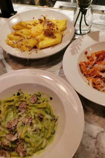 There is, and it’s still in Soho, though in the bit that’s almost in Mayfair so that nosh mostly sits on more affluent lips. It’s on the third section of the menu at Bancone, with all of the other pasta, second from top, under the cryptic name of silk handkerchiefs. Large sheets of pasta, ruffled like an unkept bed and with just enough bite not to warrant the safe word, dressed in a walnut butter with a barely warm egg yolk to let loose. It’s rich and salty and just a little bit sweet. It’s one of my favourite ever pasta dishes and at £9 it’s probably going to stop me reviewing a lot more London restaurants in lieu of it.