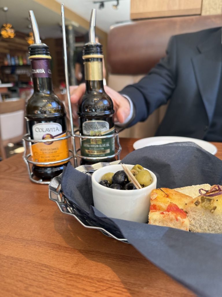 I hadn’t eaten here in ten years, maybe because I associated the restaurant with a previous relationship, or maybe because the very nature of this blog is to chase the new openings. I’m not sure they need me there; on a cold Wednesday lunch the place is throbbing with the sound of cutlery hitting plates and the rising pitch of opened wine. The dim October sunlight strained through the gaps in the shutters, casting natural light over a wooden table bearing a little more than a few fresh flowers and some salt and pepper pots. The menu is a relatable list of Italian classics, whilst the wine list is a joy for anyone who loves Italian wine. We ordered a great bottle of Chianti classico and settle down. Focaccia laden with sundried tomatoes and Tuscan bread arrive with a pot of olives and some high quality oil and balsamic. The focaccia shines nearly as much as the sense of hospitality.