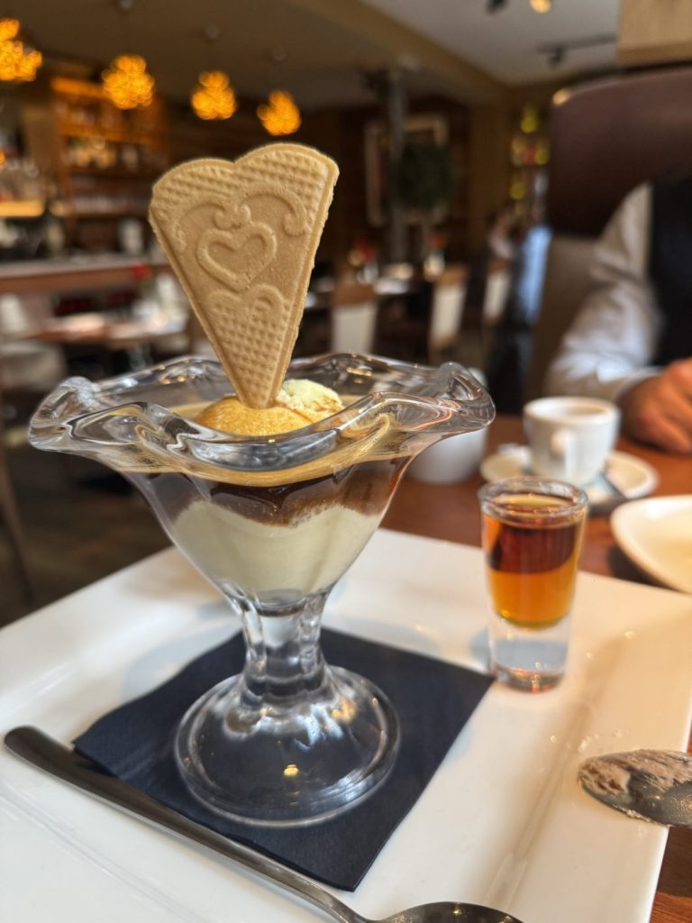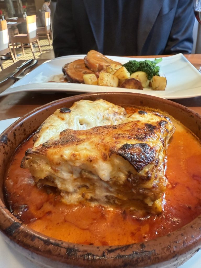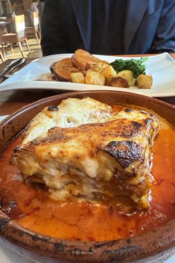 The mains involve a porchetta from the specials that has good meat and an absolutely stellar marsala sauce. The meat is probably cut a tad too thick, but this is solid, classical Italian cooking. It’s overshadowed by the lasagna, a masterclass in lasagna, the second best lasagna I have eaten. More layers than Tenet, a bechamel loaded with mace, excellent ragu, sat on a base of tomato sauce that is there to protect the bottom layer of pasta but also works to add richness. The portion is huge. We leave not a scrap.