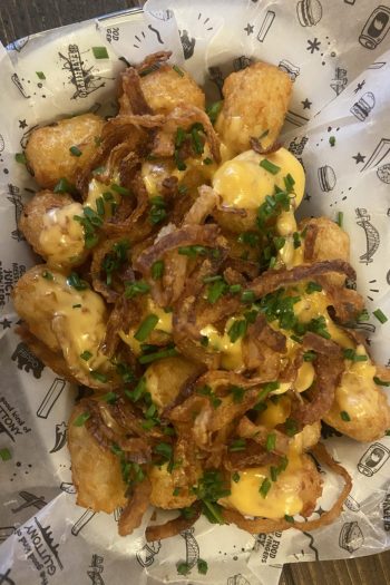 They have chips. Barely cooked and one upgraded to Caesar fries with the aid of some jizz and a bacon crumb. Everything hard work. No care applied. Just fucking awful.