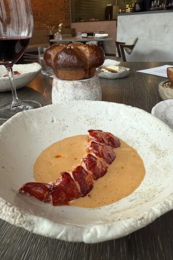 Nibbles of the smoothest liver parfait wrapped in a delicate curl of burnt onion set the tone immediately, followed by a tartlet of potted trout with brown butter that’s given brightness by a little elderflower gel at the base. Then a whole sourdough between the two of us to share with butter which is unique for being made in-house and really excellent. Too often the butter is too lactic or two cheesy; nearly always it’s undersalted. Not this. This could have been from Brittany.