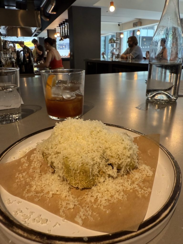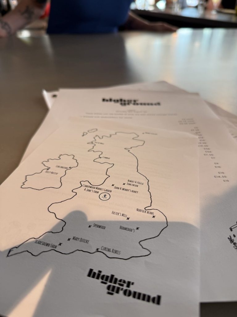 The owners of Higher Ground met in New York’s Blue Hill at Stone Barns, a sleek farm-to-fork restaurant by Dan Barber, beloved of Michelin and Netflix alike. Barber is a chef who has driven minimal waste across his two sites in New York, centering on a “third plate” philosophy where great tasting food and an environmental consciousness sit in harmony. It’s a philosophy that seems to have travelled over the Atlantic to Higher Ground, where a sleek farm-to-fork restaurant sits on New York St of all places, serving a vegetable heavy menu that’s supplemented by one entire animal that they buy in, butcher, and use in its entirety.