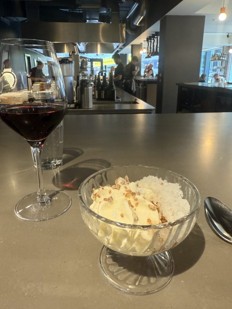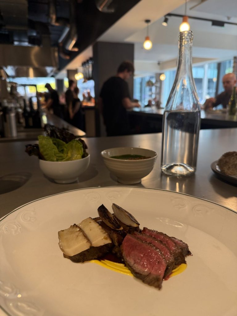 The ragu arrives as a testament to beef alone. I can’t make out in the way of sofrito, nor wine in the base, leaving it to a heady beef stock and various cuts of beef from the kitchen. The dumplings aren’t the lightest example of these – my mind goes back to a pre-vegan Gautier for that – but they work well. The final savoury course is beef, but you knew that already, as ruby cuts of rump and slowly cooked slabs of brisket. Some homemade mustard, grilled onions, and meaty mushrooms send it on its way. Everything serves to elevate the beef. It’s all pretty faultless.