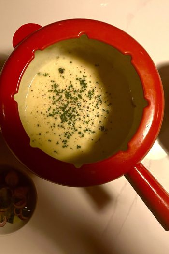 We were here for the fondue. I’m going back for the fondue on Thursday, and likely again a week on Saturday for more fondue. I’m going to get my fill before a particular corner of the internet find out about it and the place is awash with people filming the cheese pull from pot-to-mouth whilst pulling gurning faces, because believe me, those arseholes will destroy anything sacred for thirty seconds of something to get them attention. Never mind that the fondue is a mix of two alpine cheeses and white wine, cooked until just a hint of acidity remains, or that it has enough body to gently roll the bread, pickled veg, or triple-cooked spuds in, coat them and not have to fight to get them out. So I’m going as much as I can over winter, whilst it’s cold and dinner can be molten cheese and things on a stick. The fondue is twenty quid per head. It’s not just Birminghams most essential dish at present, it’s arguably its best value.