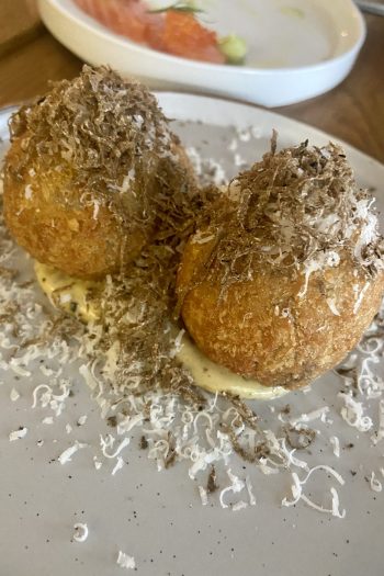 Over ninety minutes we have Caprese salads showcasing the finest of tomatoes and milky mozzarella and a basil dip with crisp shards of aubergine, salty and perfumed. There are fat slices of cured salmon – as good as any salmon in the city – lifted by avocado and the kiss of citrus. Maybe best is the truffle arancini, properly tasting of truffle, on a truffle mayo of sorts and under a flurry of more truffle and pecorino. It is a salty umami bomb, destined to be a cult classic in Birmingham.