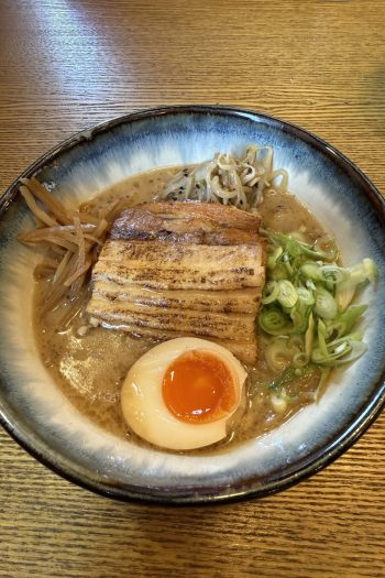 The ramen has to be good, right? It’s half of their name. It is. Creamy, unctuous stock full of collagen and other wobbly bits, lifted by the tare, it tastes like it’s the work of a patient hand like all good ramen does. The noodles are good, the egg is good, the pork is very good. It’s a solid eight-out-of-ten ramen, destined to be the go-to ramen in a city that didn’t do it that great previously. I have the katsu again. It’s good katsu. Lovely deep curry sauce that more than makes up for the slightly spongey bigger pieces of chicken. I think I’ll eat the katsu quite a bit this summer because, as Omar correctly points out, eating ramen outside on a hot day is plain weird. That said, and this is a very public beg, please put the chicken tantatam on and you’ll see me all of the time.