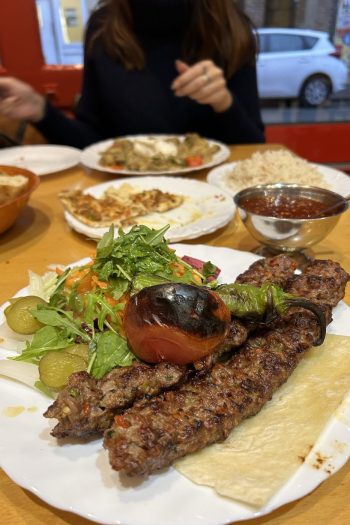 Sophie’s aubergine dish is a garlicky mess of smushed veg, a bit like baba ganoush’s even uglier sister. She enjoys it and finishes it all apart from the superfluous rice. The best bits happen when it gets spooned into the pide with hunks of the lamb, pepper, and loads of the chilli sauce. And with that we’re out the door as more pour through the opposite way for platters way bigger than we ever could have considered.