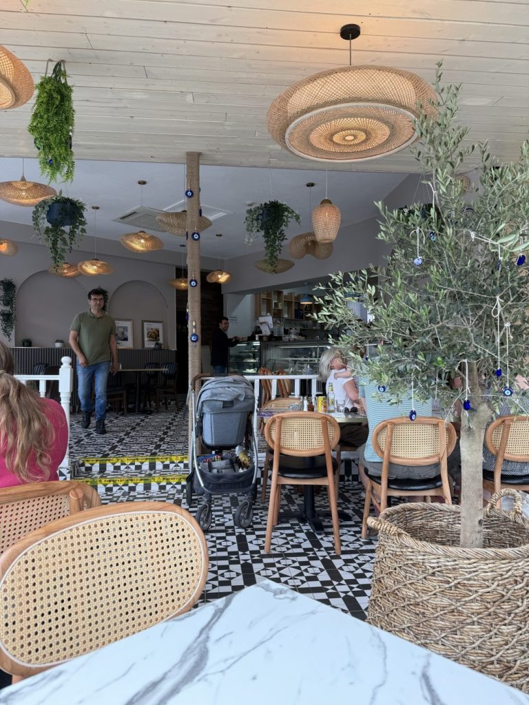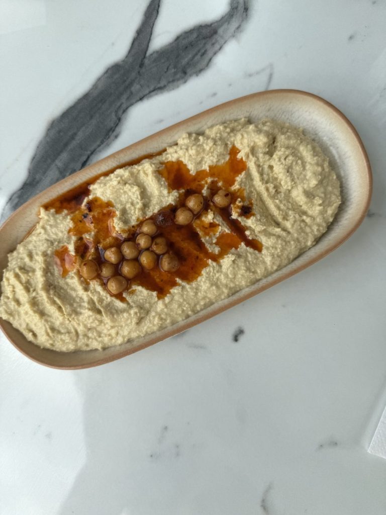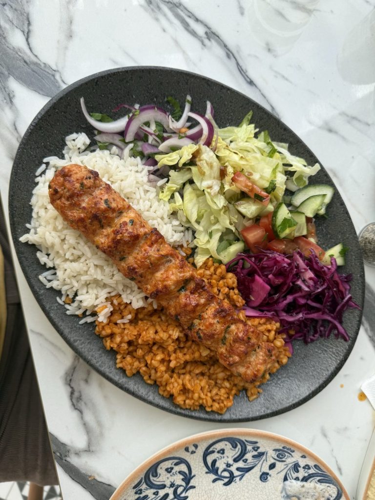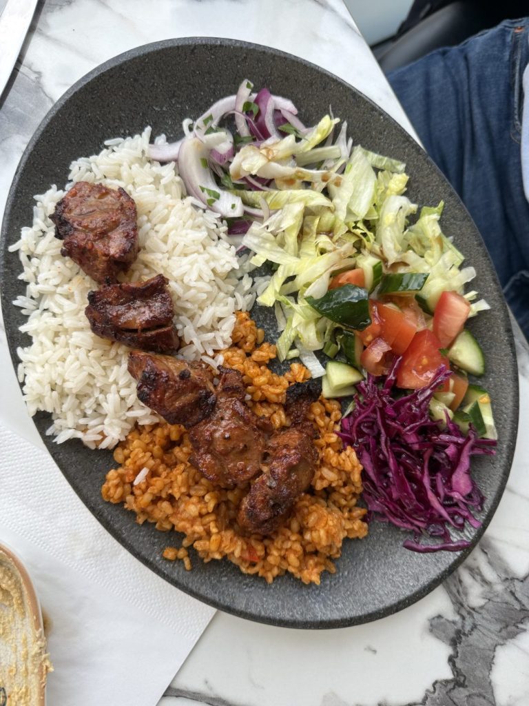 Lunch is a simple offering. A selection of wraps, burgers, and grills, all for under a tenner. We start with hummus which is good, if not spectacular. It has texture, which I love, and crispy chickpeas doused in paprika oil, which I also love, but also so much tahini I find it all tasting a bit peanut buttery. With this is good pide bread. Maybe not the lightest I’ve ever had, but certainly better than most.