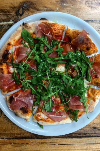 The menu is short and led almost entirely by pizza, the style of which is closer to the shorter, firmer dough of Rome, than the sloppier Neapolitan, meaning transport by hand is easier. The crust is blistered; chewy and malleable, requiring a full set of teeth to work through it’s rewards. The toppings are familiar with anyone who understands the obsession behind the man; almost exclusively Italian, often picked out by Luca over video call with his buyer. Familiar pizzas of pepperoni and margarita are joined by huge drapes of Serrano ham with rocket, or pickled cipollino onions and ‘nduja. Occasionally scamorza might make an appearance, or globe artichokes doused in peppery oil. It really is driven by the seasons unlike any other pizzeria in Birmingham. From memory the most expensive is about £10. It’s too cheap.