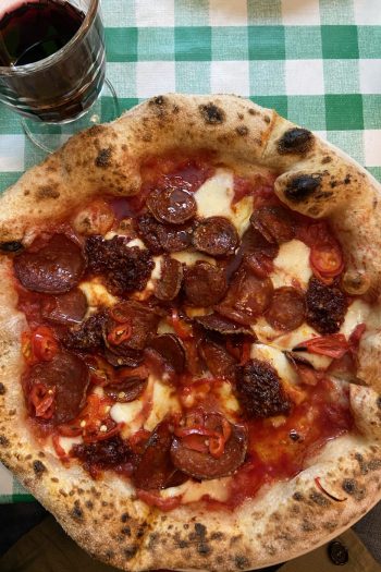 The pizza is good, very good even. Thick, chewy crust with blistered edges; middle just loose enough to qualify for the cast of Love Island. Straight outta Naples though with more generosity on the fillings. Loads of pepperoni with a good measure of ‘nduja ordered on top. Sure the dough could have done with a little more character, but this is a solid 8/10 all day long. The same cannot be said for the side of meatballs drowned in the same tomato sauce as the pizza, which here hasn’t been cooked down enough. The pork and beef meatballs are too tightly packed and it’s all a bit sad and bouncy, like a drunk aunt on a child’s bouncy castle. I leave almost all of it and focus on the pizza.