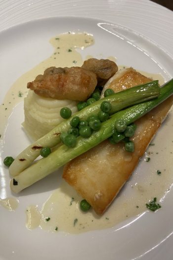 At £31 for three courses (£16 at lunch) the restaurant pitches itself firmly at the brasserie price point, delivering food mostly of that standard and occasionally exceeding it. There is a little cup of pumpkin soup for an amuse which is silky and well made, if a little twee, followed by bread that needs more salt. A lot more salt. The kitchen hits their stride with pressed ham hock, deep fried quail’s egg, celeriac remoulade, and compressed pineapple. It’s gammon, egg and pineapple reimagined, not a million miles away from a dish that I had at a starred restaurant in the city on concept and delivery. It’s superb; technically astute and properly seasoned. You could eat this just about anywhere in town and be happy. Similar story with scallops pan fried to an opaque centre with good crust. A cauliflower puree is lifted by a little curry powder, raisins to add a nice sweetness and cauliflower beignets for texture. It’s well considered and again, well executed. Two very good starters with a lot to admire.