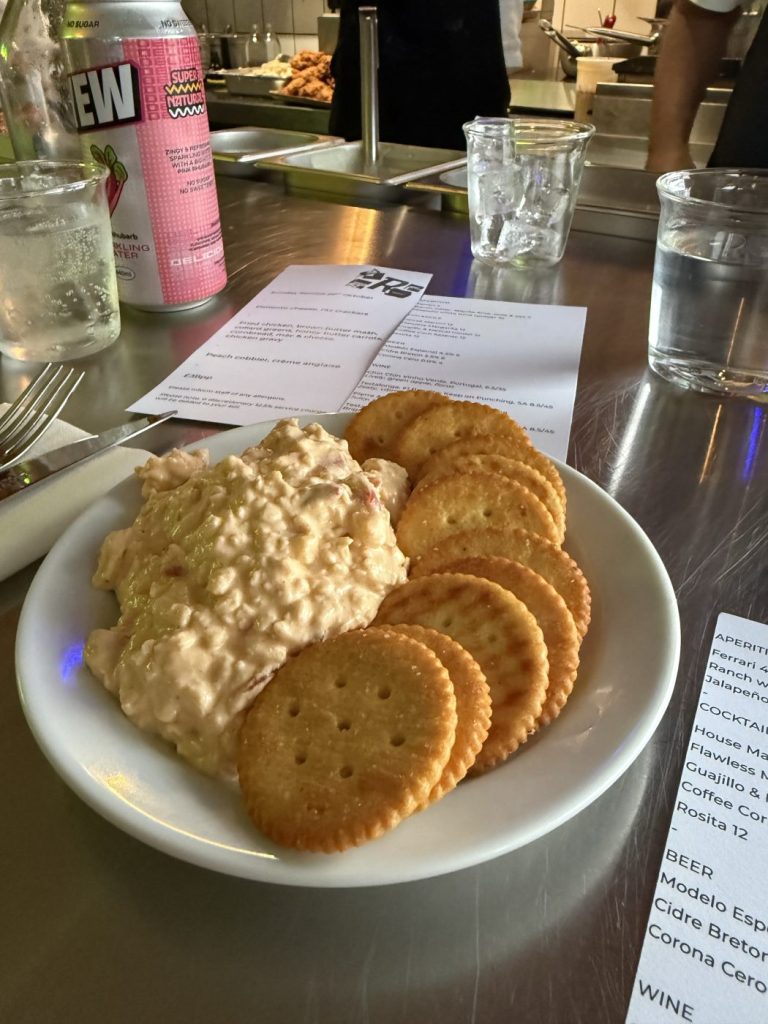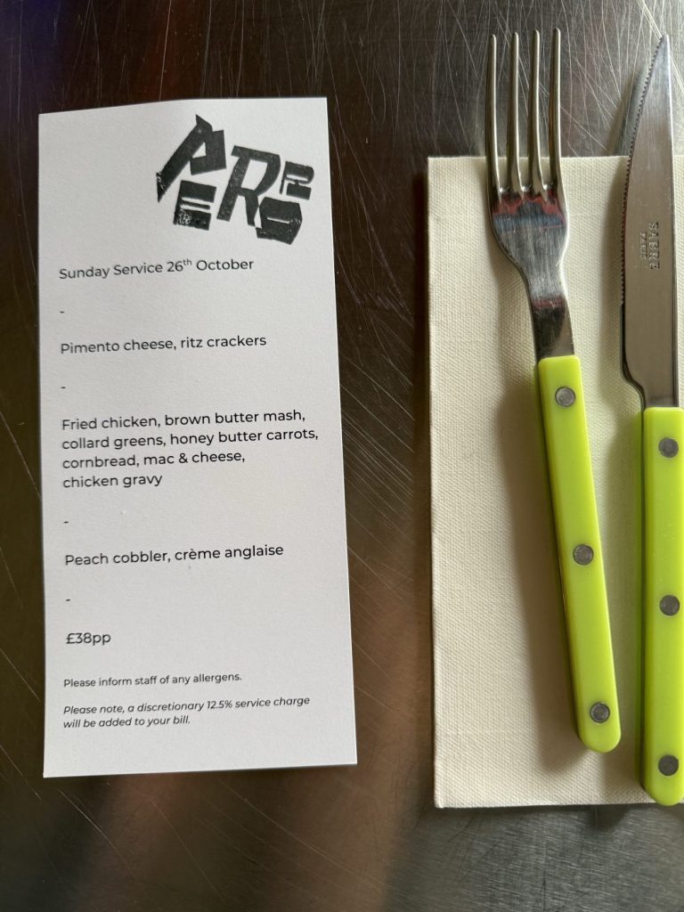 But Sunday Services? That’s a different gravy all together. I am well aware that it sounds a bit churchy, or like that thing that Kanye did before he got mentally unwell and started behaving like a mentally unwell person does. A Sunday eating a menu from the southern states of cuckoo land appeals to me, because there is flavour there and the promise of fried chicken and a different gravy all together. Plus Matt and the team at Perro cook like absolute bastards. First up are drinks; a Ferrari (a mix of Campari and Fernet Branca), the corn sazerac, and a Jarrita cola for me, whilst Sophie has a jalapeno spritz which would be her drink of the summer had we not entered winter. There is pimento cheese; to you a mix of cream cheese, cheddar, mayo, spices, jalapenos, and witchcraft, blended and served with Ritz crackers. I imagine some might scoff at the cracker bit, but it works and it’s damn right delicious.