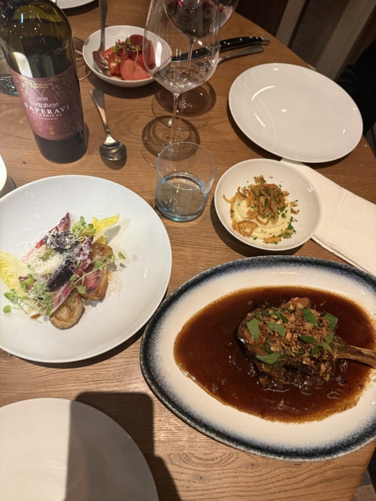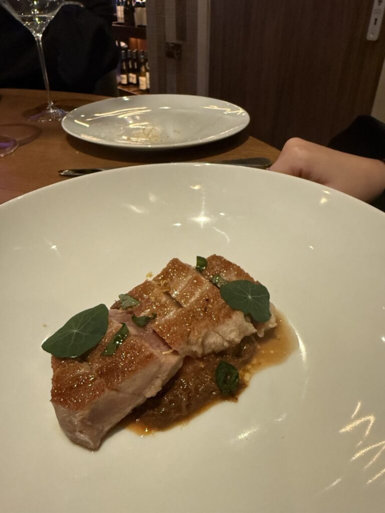 That’s the snacks section done, now for Sophie and I starters. I get coddled egg with a kind of almond mousse and truffle, with some brioche on the side. Sophie thinks it’s a bit too marzipan but I like the pure indulgence of it all. It feels like it could give me gout with any luck. Sophie has tuna with oxtail ragu. She loves it. Her mom loves it. I love it. It’s borderline genius, a bit like Jamaican escovitch but more refined, more polished, more tyre guide porn material.