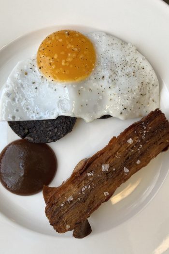 The menu is short and concise. Brunchy things at the moment, with a roast on Sunday and evening menus coming soon. The signs are promising; a blistered rarebit where the molten mixture fully encapsulates the toast is about as good a rendition you’ll find. The likely iconic dish here is black pudding, fried duck egg, and a breeze block of bronzed potato, slices layered and cooked slowly in beef fat. It’s a big, rich plate of umami, brash and handsome.